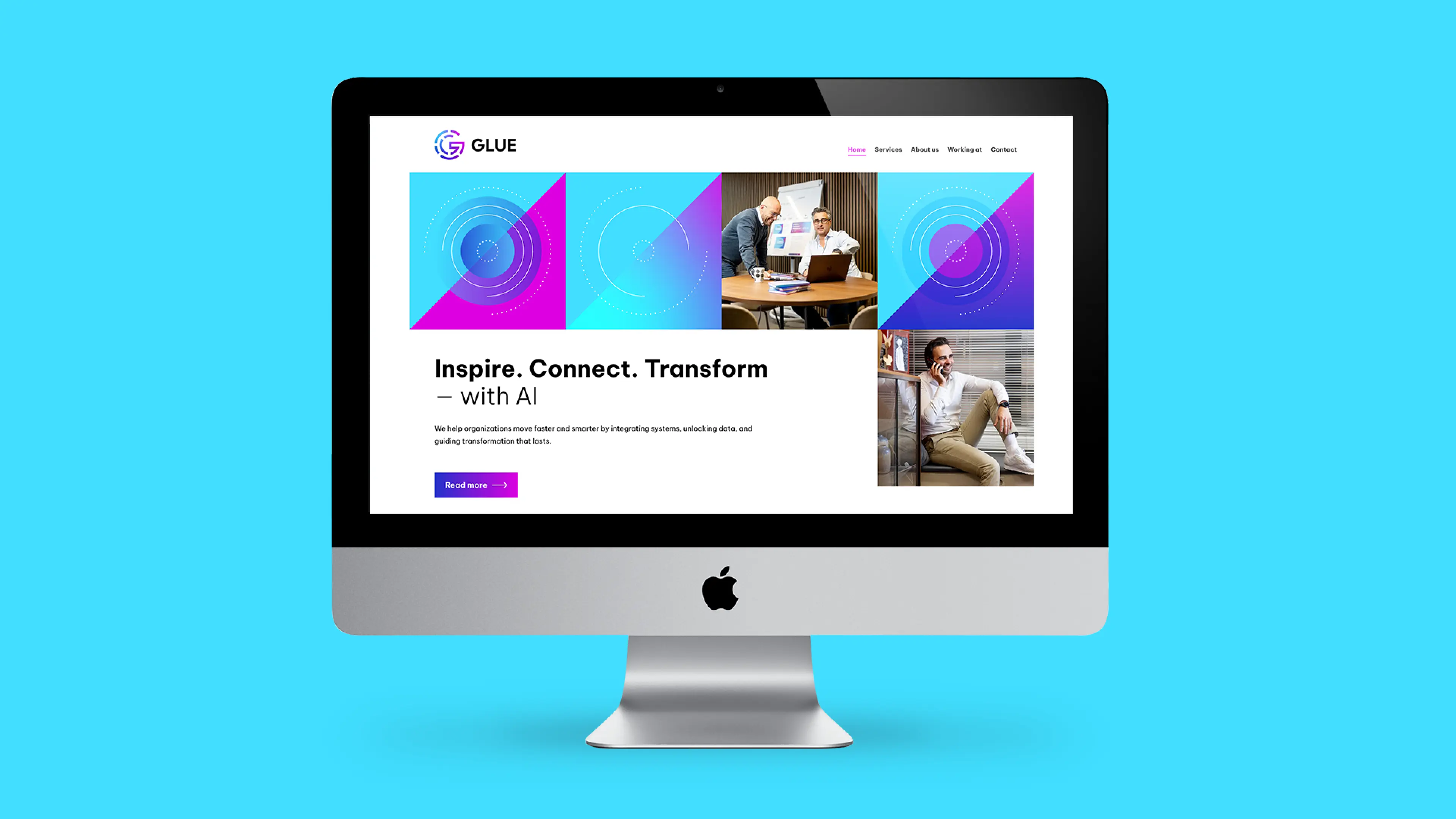 New brand identity and website for Glue Consultancy, a forward-thinking AI and data consultancy firm. In addition to the new branding, presentation materials, and a series of animations, we also developed the new website.